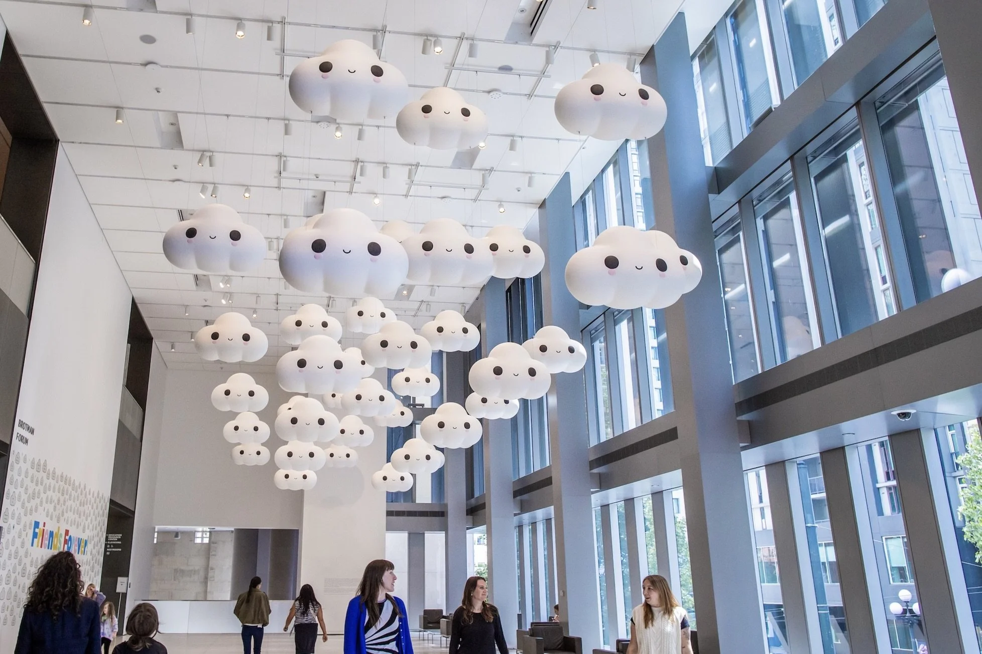 The Brotman Forum at Seattle Art Museum, with current exhibition “Little Cloud Sky” by FriendsWithYou / Samuel Borkson and Arturo Sandoval III. Photo: Natali Wiseman.